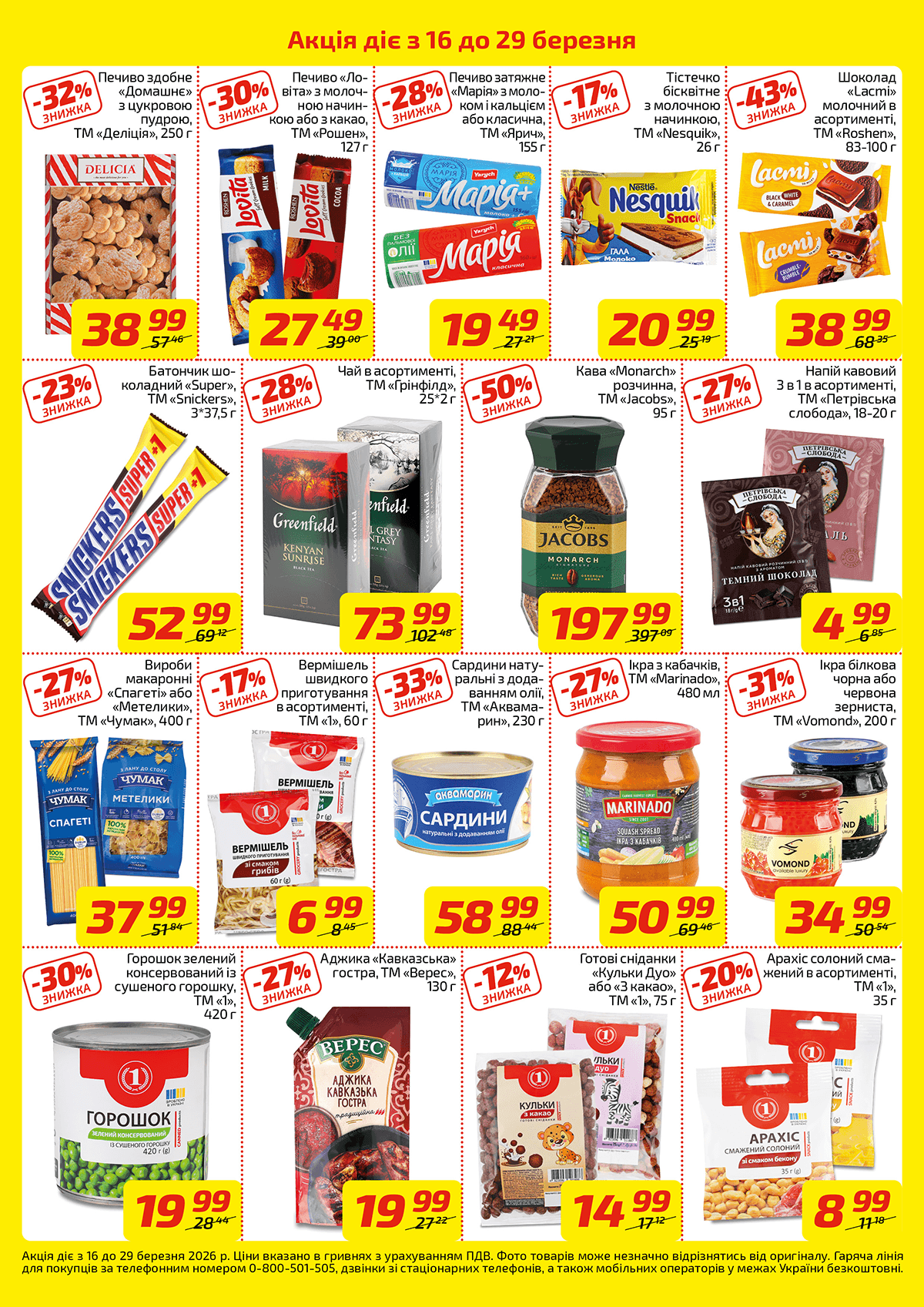 З 16 березня до 29 березня у магазинах «ВК Експрес» діють знижки до -43% на популярні товари щоденного попиту. Саме час вигідно поповнити запаси всього необхідного — швидко, зручно та поруч із домом.
